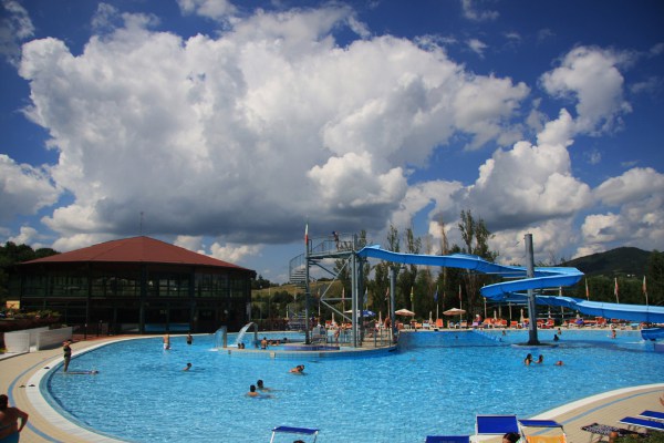 Oltre alla vasca il complesso propone, infatti, solarium, beach volley, palestra, idromassaggio, gayser, cascata benessere, spettacolare scivolo di 50 metri e area attrezzata con giochi gonfiabili per gli ospiti più piccini. Non solo, dalla stagione 2007, l’acqua della piscina è riscaldata assicurando una temperatura di almeno 25 gradi. E’ presente anche un bar-ristorante e durante tutto il periodo di apertura vengono organizzate attività di animazione e acquagym (sabato e domenica).